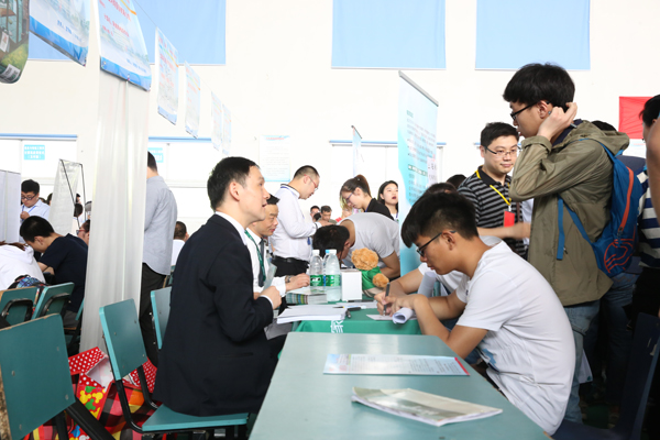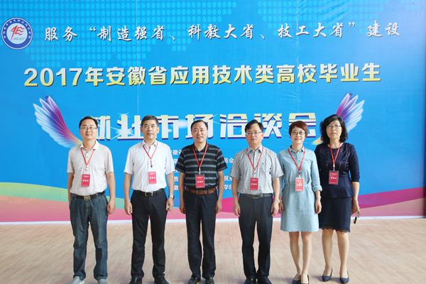 本网讯 为服务“制造强省、科教大省、技工大省”建设,促进毕业生高质量就业,5月20日,2017年安徽省应用技术类高校毕业生就业市场洽谈会在学院隆重举行。省教育厅大中专毕业生就业指导中心副主任袁江林,学院党委书记石象斌,党委副书记、院长王国武,党委委员、副院长马莉莉,党委委员、副院长姚卿佐,党委委员、人事处处长辛颖,省教育厅大中专毕业生就业指导中心市场信息部部长崔松革、发展培训部部长王素苗等到会指导,并详细了解企业需求和学生应聘情况。