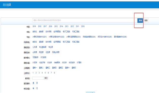 (六)进入页面后,点击查询,查看可选的课程根据容量及自己的意愿选择相应的课程;