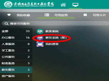 (四)进入“智慧电院”后,找到 “可用应用”下“教务服务”端口,点击进入教务系统(新)页面;