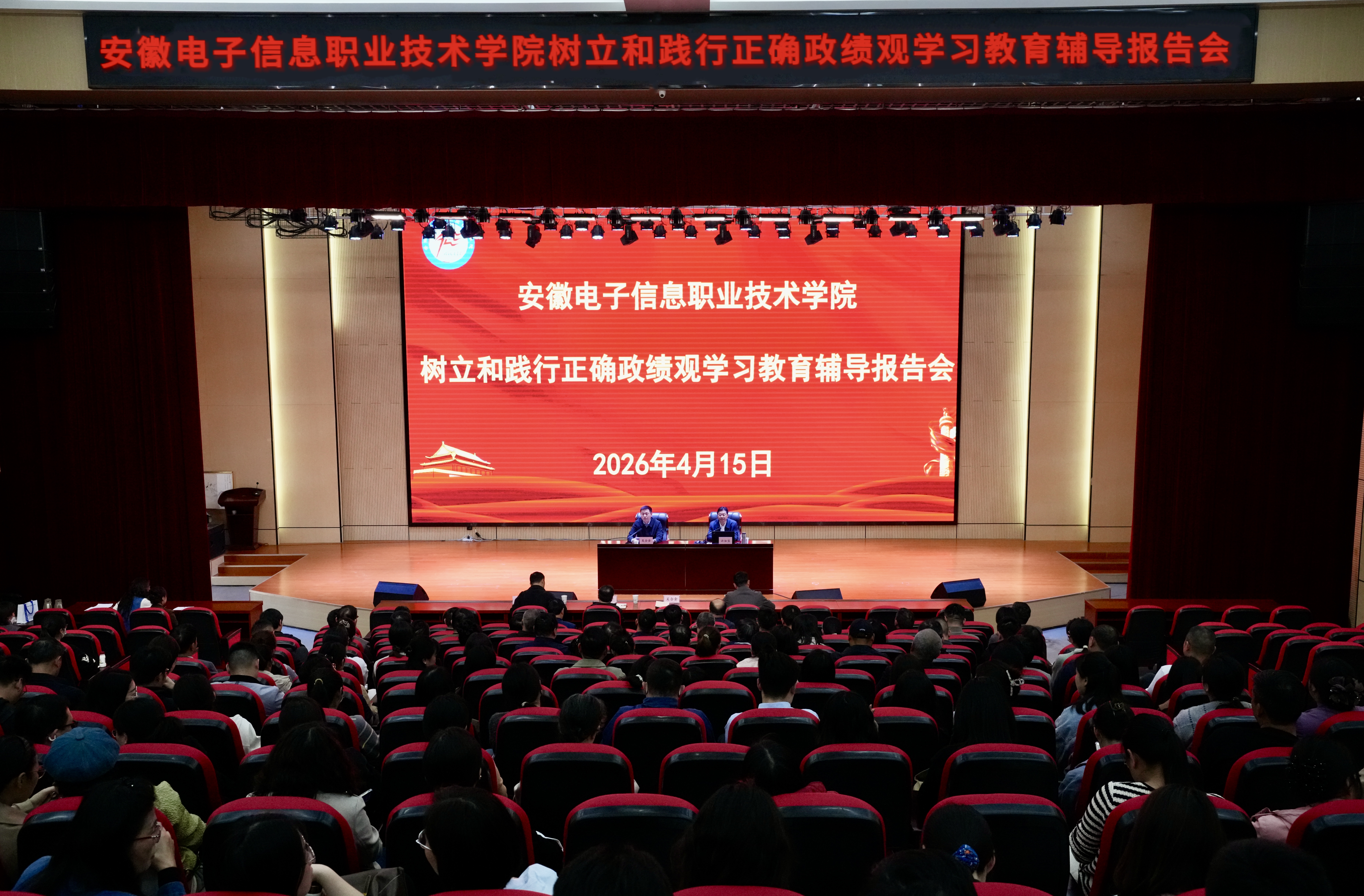 本网讯 4月15日下午,学院召开树立和践行正确政绩观学习教育辅导报告会,邀请中共蚌埠市委党校校委委员、副校长许如宝同志作专题报告。学院党委书记吴合金主持并讲话,强调要深入学习贯彻习近平总书记关于树立和践行正确政绩观的重要论述,进一步统一思想、凝聚共识,引导全体教职工党员深刻把握正确政绩观的科学内涵和实践要求,坚守为党育人、为国育才初心使命,在推动学院高质量发展的实践中展现新担当、彰显新作为。全体教职工党员参加会议。