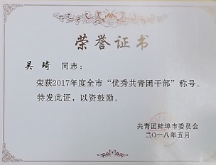 本网讯 日前,从蚌埠团市委传来好消息,我系电信172团支部获全市“五四红旗团支部”荣誉称号;吴琦老师获得全市“优秀共青团干部”荣誉称号。
