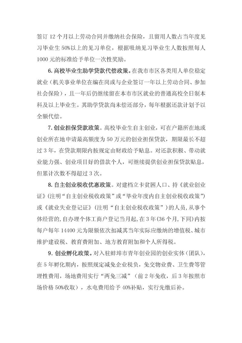 蚌埠市鼓励支持高校毕业生就业创业政策
