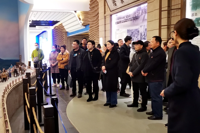 汪涛馆长热情接待了方庆山一行,在座谈会上,双方就建立教师和学生的实践教育基地达成初步意向。随后,在解说员的带领下,全体党员依次参观了馆内城市设计、建设成就、总体规划和历史沿革几大展区。活动中,大家一起了解了蚌埠盐粮立市、铁路兴市、工业强市、商贸活市、生态亮市不同阶段的发展历程。认真学习了十八大以来蚌埠的老工业基地调整改造、合芜蚌自主创新综合配套改革试验区建设、硅基新材料产业集聚发展基地建设和淮河生态经济带国家战略等发展规划。