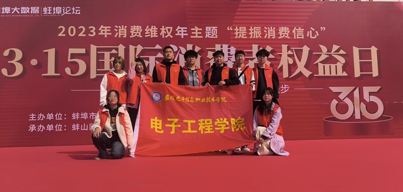本网讯3月15日上午,由蚌埠市市场监督管理局、蚌埠市消费者权益保护委员会主办的“3·15国际消费者权益日”宣传活动在万达广场举行,电子工程学院应邀组织10名青年志愿者代表大学生消费群体参加了宣传活动。