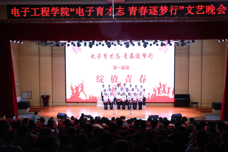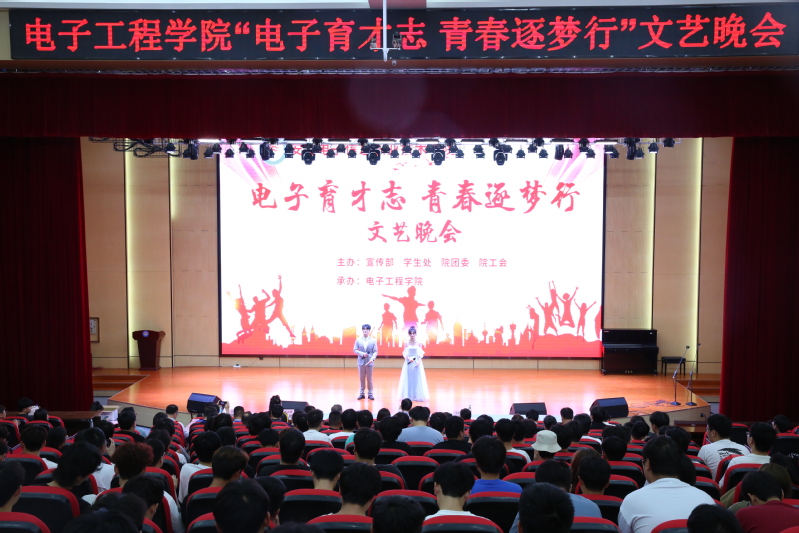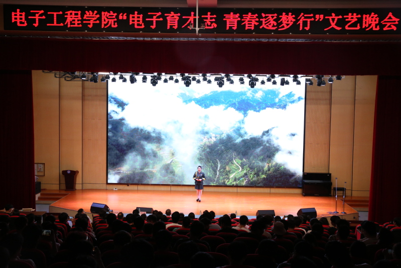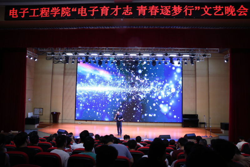 本网讯 5月31日晚,由宣传部、学生处、院团委、院工会主办,电子工程学院承办的“电子育才志 青春逐梦行”文艺晚会在实验楼学术报告厅成功举办。学校领导、各部门负责人和师生代表近700余人观看了演出,共享青春华美盛宴。