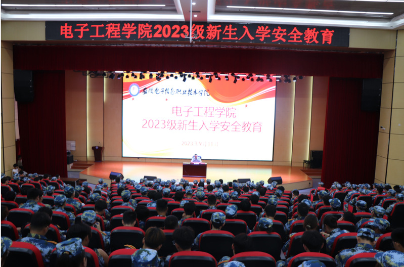 本网讯 为帮助2023级新生牢固树立安全意识,掌握安全防范技能,提升自我保护能力,以良好的状态迎接新学期、开启新征程。9月11日下午,电子工程学院在实验楼学术报告厅开展了“安全教育第一课”专题安全教育活动,蚌埠市龙湖派出所所长陈兴武受邀做安全教育讲座,电子工程学院全体2023级新生参加了本次活动。