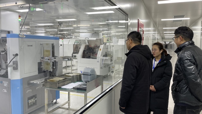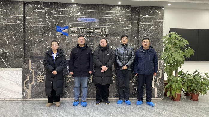 方庆山一行首先来到安徽禹芯半导体科技有限公司。交流中,公司人力资源部经理王小白对学院来访表示了欢迎。方庆山介绍了电子工程学院的专业设置、人才培养和校企合作的基本情况,并就学生岗位实习工作的安排和就业工作的推进与企业进行了深入交流。随后,调研组一行参观了企业的生产车间,现场了解了企业的产品工艺流程、重点设备、岗位需求与工作环境,双方均表示,企业的岗位需求与集成电路技术、现代通信技术、应用电子技术和电子信息工程技术等专业均具有很高的契合度,校企亟待进一步深度合作。方庆山一行还看望了正在该公司实习的电子信息工程技术专业的学生代表。