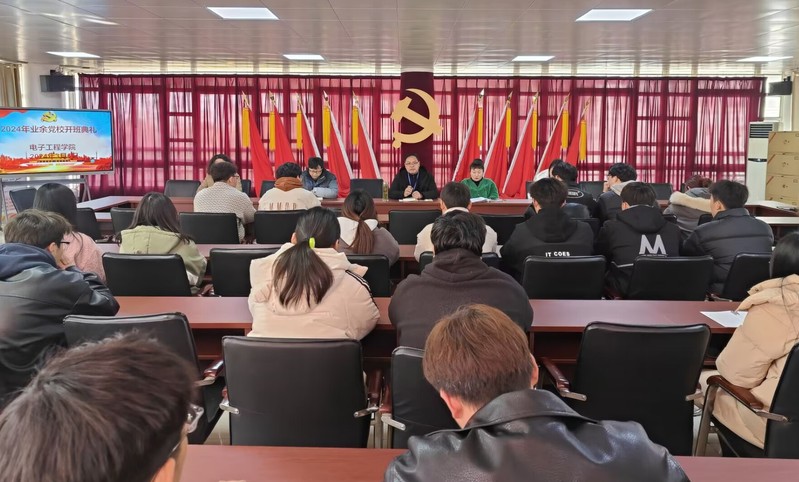 本网讯 3月6日下午,电子工程学院在3003B举办了2024年业余党校开班仪式并开展了第一次授课培训。电子工程学院党总支书记方庆山、党总支副书记俞慧慧、副院长李征、教师第一党支部书记袁媛、学生党支部书记崔杉杉以及来自电子工程学院各班级的35名积极向党组织靠拢的优秀学员参加了开班仪式,开班仪式由崔杉杉主持。