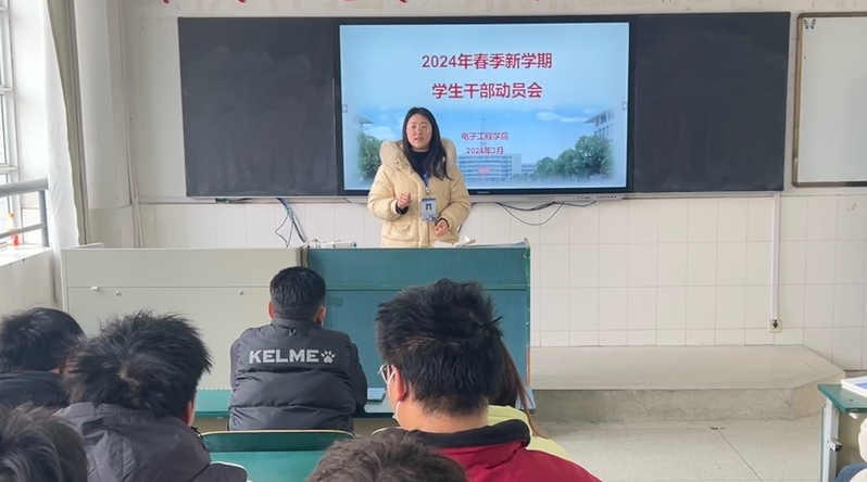 本网讯 新学期伊始,为进一步推动学生工作开好局、起好步,加强学生干部的凝聚力和执行力,提升学生干部综合能力,3月7日,电子工程学院团委组织召开新学期学生干部动员会,会议由团委刘田田老师负责,学院团委委员、学生会各部门及青年志愿者协会负责人共同参会。
