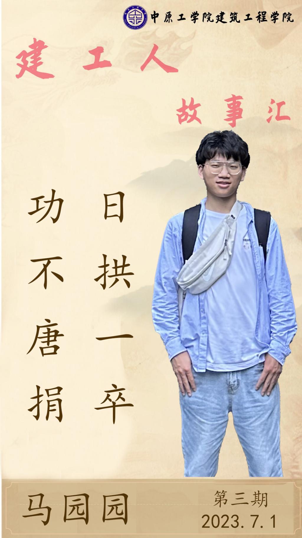 马园园,男,共青团员,2019年9月至2023年6月在中原工学院取得学士学位。2023年考研以415分(超国家线142分)顺利考取广州大学土木工程学院研究生。