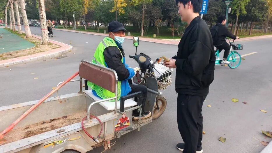 重阳当天,学院志愿者捧着装满暖宝宝的袋子,走进校园各个角落,把暖意送到 “校园守护者”手中,用行动把“敬老”落在实处。