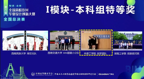 2022年6月27日上午,第八届全国高校BIM毕业设计创新大赛圆满闭幕。中原工学院建筑工程学院共有14支参赛队伍,涵盖7个模块,经过激烈角逐,共有13支队伍获奖,其中全国特等奖1项,一等奖1项,二等奖2项,三等奖7项,优秀奖2项;其中由王喜彬和周兰兰老师指导的创梦团队荣获大赛特等奖;宋晓庆和李刘蓓老师指导的CRED团队荣获大赛一等奖。