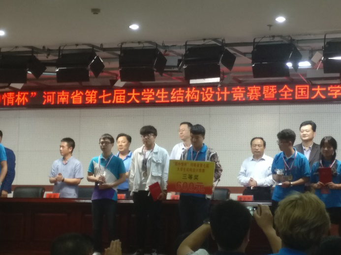 2018年5月18日—20日,“雨中情杯”河南省第七届大学生结构设计竞赛暨全国大学生结构设计竞赛河南省分区赛在河南科技大学(洛阳)隆重举行,共有66支参赛队伍。建筑工程学院派出2支参赛队伍,共6名学生,代表中原工学院参加本次大赛。