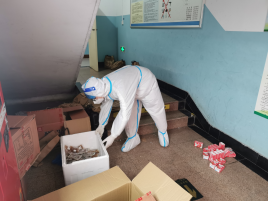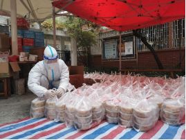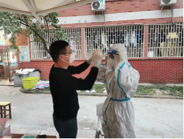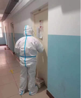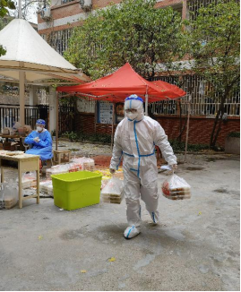 叮铃铃叮铃铃......6:20的闹钟叫醒了沉睡的韩优峰同学,他抓紧洗漱,做好个人工作后迅速到北5楼下,教师志愿者早已在楼下等着他。为保障安全,他在教师的指导下,科学规范穿戴防护服、佩戴N95口罩、防护面罩、医用外科手套。防护做好后,跟随教师志愿者开始紧张繁重的工作:喊楼、做核酸、维持秩序、分餐、打包、送餐、发中药、发放捐赠物资、防疫消杀、清运垃圾……上上下下,不停奔波。经过几个小时的连续奋战,体验活动结束了,薄薄的防护服让他体会到这个初冬最特殊的桑拿感,他在教师指导下脱去防护服感叹道“这次志愿者体验让我深刻的认识到志愿者的工作是很累很辛苦的,不亲身体验是无法明确理解的”,他离开后,我们的教师志愿者团队在短暂休息后带着下一位体验者开始新一轮的战斗。