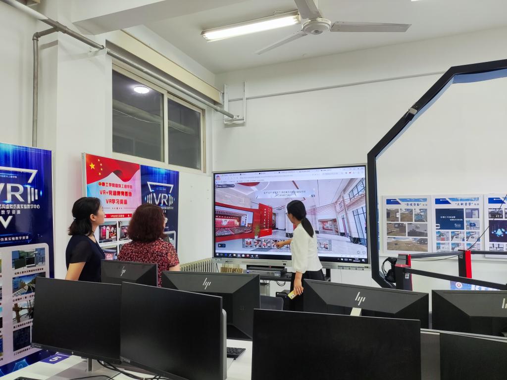 交流环节,参会教师与各位专家,围绕课程思政融合路径、高阶性教学设计等方面进行热烈讨论,最后,教务处副处长赵尧敏高度赞扬了学院在课程思政建设取得的成果,希望持续挖掘课程思政教学案例,形成具有特色课程思政教学体系。参观环节,与会教师在VR+思政”教育基地,身临其境体验了由学院自主研发的建筑安全课程思政VR实践项目、乡村振兴帮扶VR云展馆、廉政教育VR云展馆等,共同感受数字赋能课程思政教学新局面。