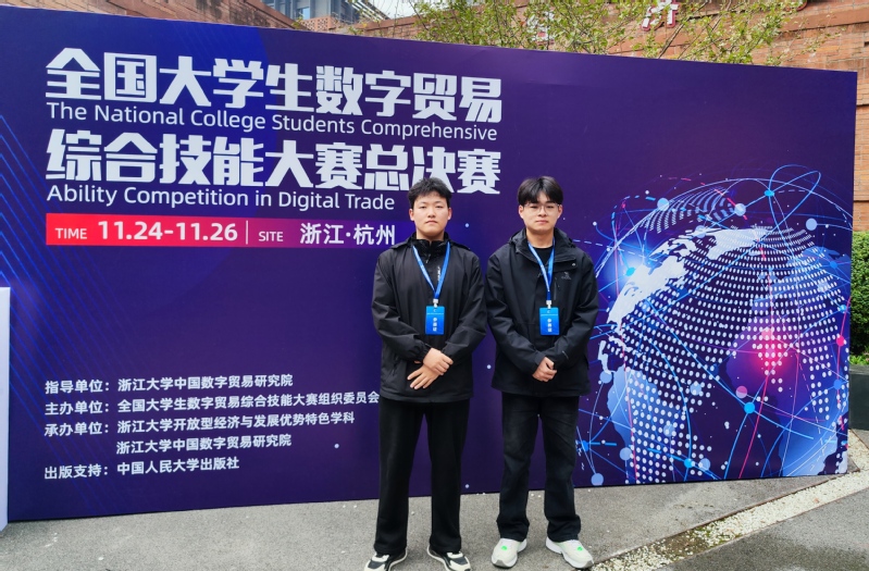 本网讯 近日,第二届“数贸杯”全国大学生数字贸易综合技能大赛在浙江大学经济学院落下帷幕。经济管理学院骆臣庆、孔瑶、姚定传、余函、曾令彬团队荣获全国一等奖;潘超、陈嘉诚、王李行、尹秀秀、彭婉婷团队荣获全国二等奖;学院在竞赛中表现突出,荣获“优秀组织奖”。