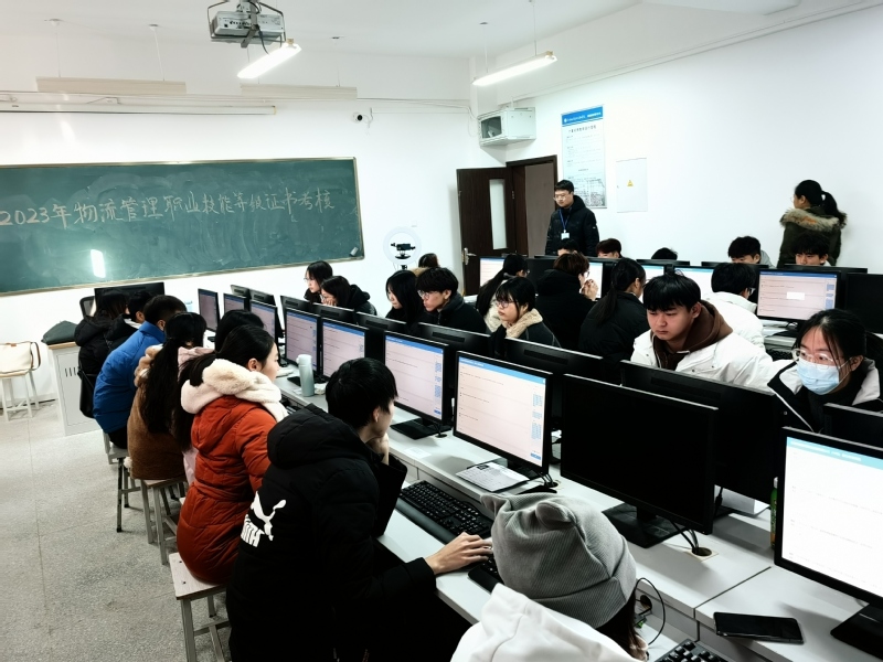本网讯  为深入贯彻落实《国家职业教育改革实施方案》,有效推进“1+X”证书制度试点工作,切实提高现代物流管理专业教育教学质量,2023年12月23日,经济管理学院物流管理“1+X”职业技能等级证书考试在中320机房和智能物流实训室顺利举行,2022级现代物流管理专业40名学生参加了本次考试。