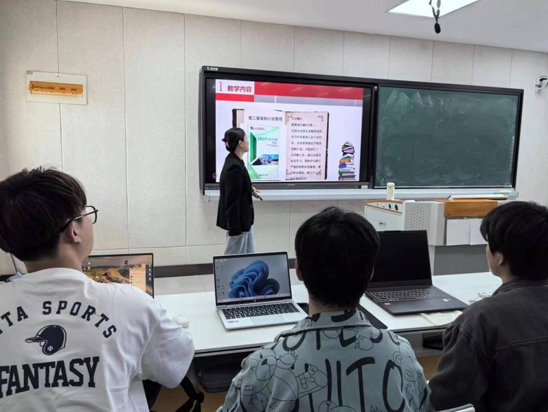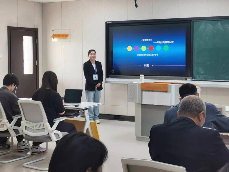 本网讯  为切实提高教师的课堂教学能力,发挥公开示范课的引领作用,促进教师间交流,4月23日下午,经济管理学院在信息楼南203智慧教室开展《采购管理》公开示范课。本次公开示范课由物流教研室教师韩莉主讲,经济管理学院全体教师和其他教学部门部分教师参加观摩。