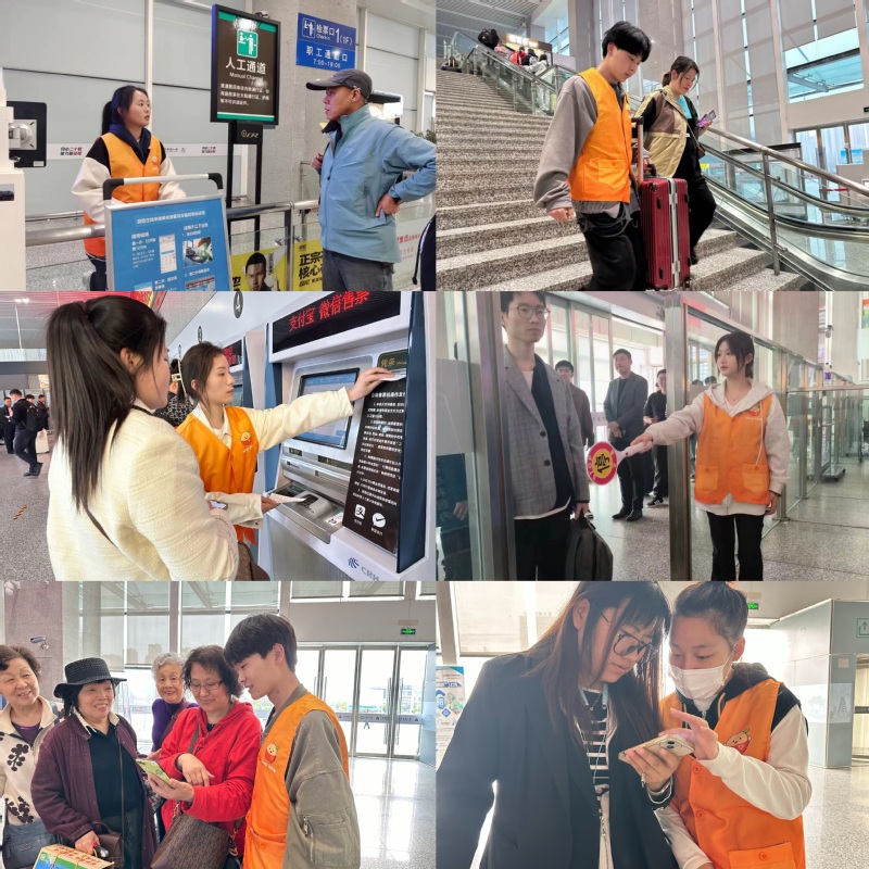 活动当天,志愿者们早早地来到蚌埠高铁站。在与高铁站负责人员对接后,同学们快速进入工作状态。他们有的在咨询台开展咨询服务;有的在进站、出站口开展进出站旅客秩序维护;有的在候车大厅流动开展重点特殊旅客帮扶。活动中,同学们礼貌大方,热情主动,积极奉献,充分展现了当代大学生昂扬向上、朝气蓬勃的良好精神风貌。此次志愿服务活动不仅为旅客们提供了实实在在的帮助,也锻炼了青年志愿者的沟通能力和团队协作能力。服务期间,我院志愿者以热情周到的服务,认真细致的工作赢得了广大旅客的交口称赞。