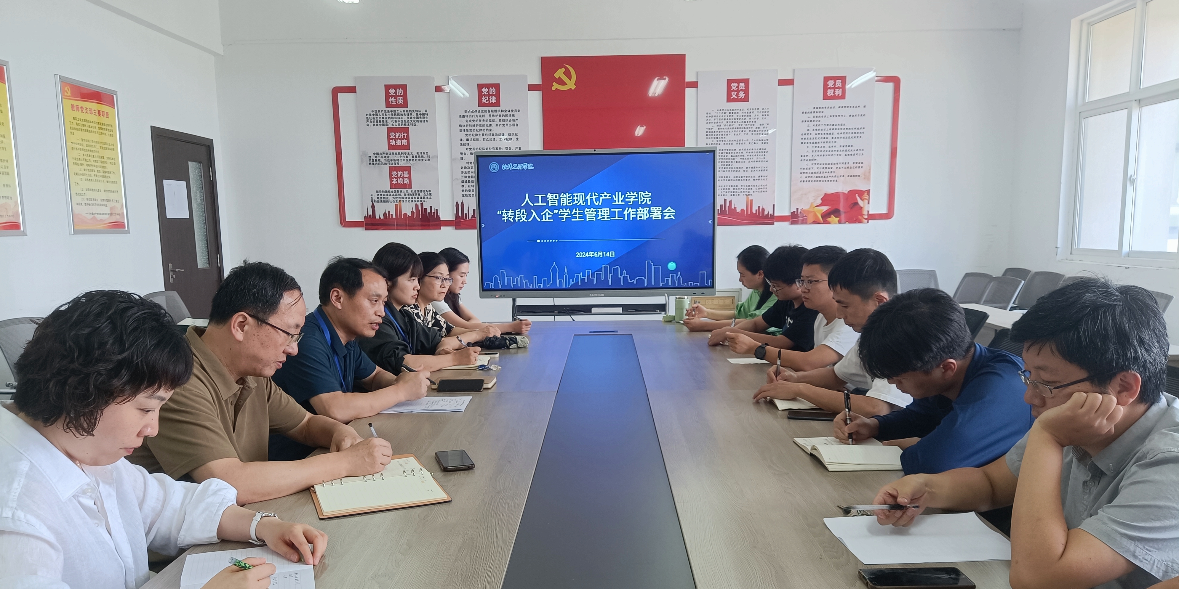 本网讯 为更好地落实现场工程师“转段入企”工作,6月14日下午,人工智能现代产业学院召开学生管理工作会议,软件工程学院党政负责人,现场工程师班教师和辅导员代表参加会议。会议由软件工程学院院长夏克付主持。