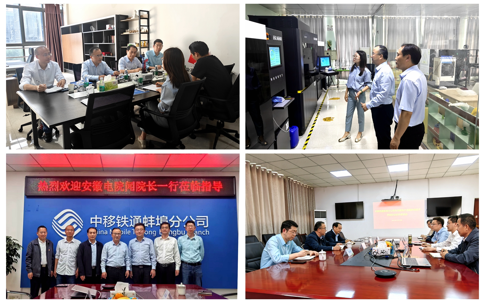 本网讯 4月25日,学院党委委员、副院长闻学带队赴安徽煜锐三维科技有限公司、中移铁通蚌埠分公司等企业走访调研,软件工程学院院长夏克付及相关专业负责人陪同调研。