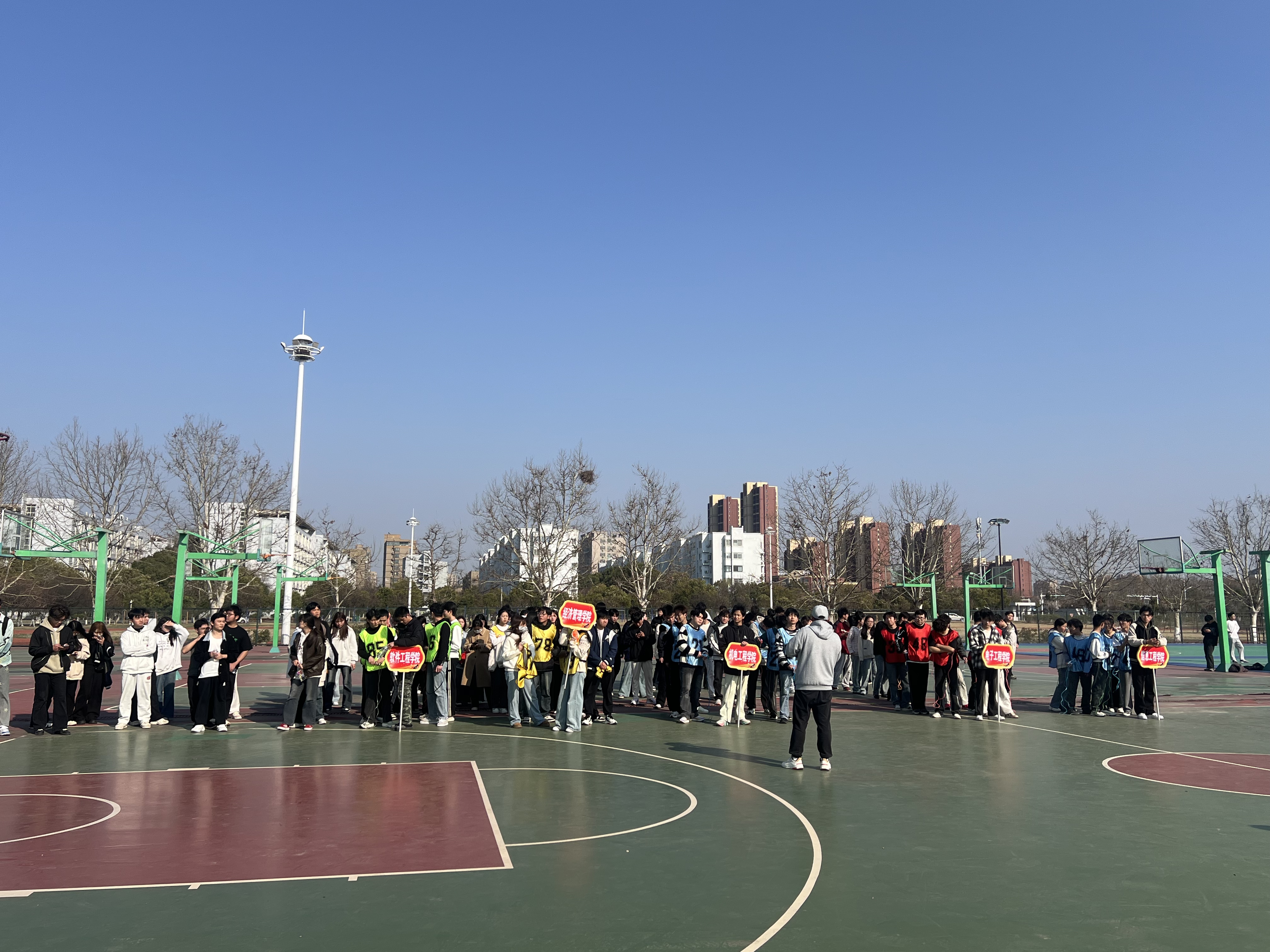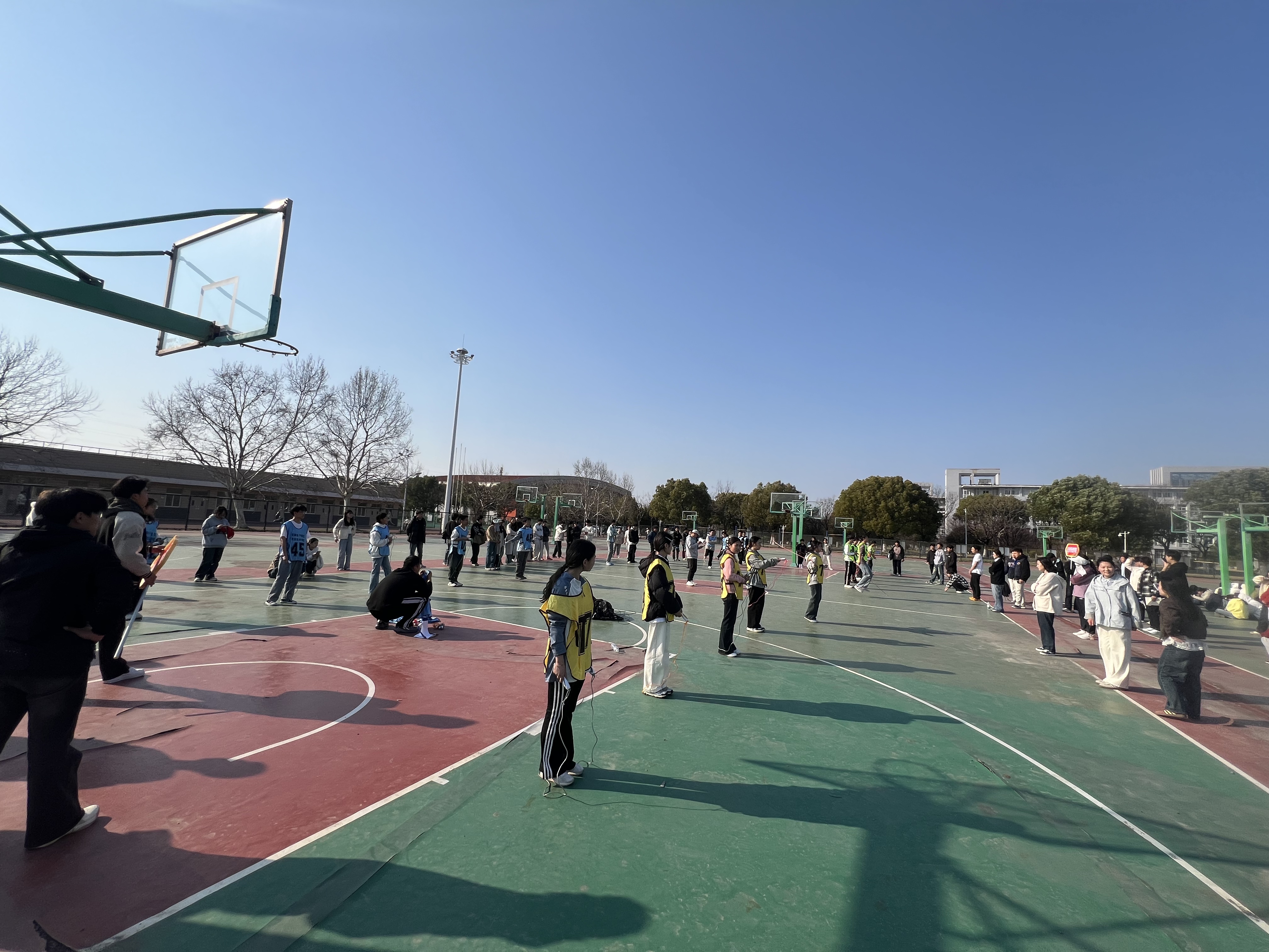 2025年3月19日下午,学院跳绳接力比赛在篮球场火热开展,比赛吸引了众多同学参与,现场气氛热烈。