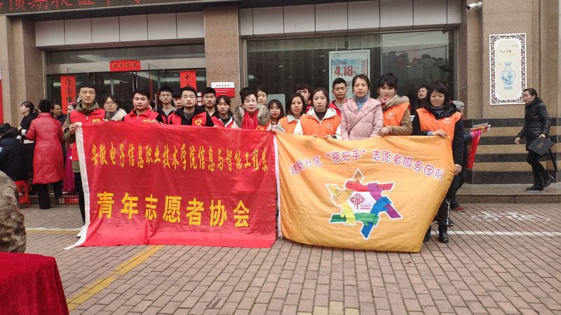 本网讯 3月1日上午,信息与智能工程系作为共建单位,应邀组织20余名志愿者参加蚌埠市建新社区“新时代实践文明站成立暨学习雷锋日宣传活动”。