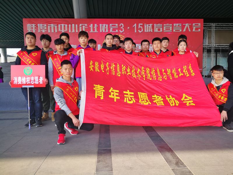 本网讯   315日上午,作为蚌埠市工商局消费维权志愿服务基地,我院信息与智能工程系应邀组织20名青年志愿者,代表全市大学生消费群体,赴蚌埠市淮河文化广场会展中心参加由蚌埠政府主办、市工商质监局、市消费者协会承办的以信用让消费更放心”为主题的大型广场宣传活动蚌埠市人大常委会副主任周刚民、市政府副市长陈忠卫等领导出席并启动此次主题活动。
