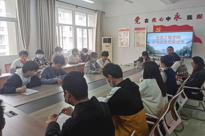 本网讯 为进一步加强教学管理,提高课堂教学质量,了解学生学习生活情况,4月20日中午,信息工程学院在信息中心南306会议室召开学生教学信息员座谈会。学校发展规划处刘亚、学院教学督导组成员周丰杰、各班级教学信息员参加会议,会议由副院长胡北辰主持。