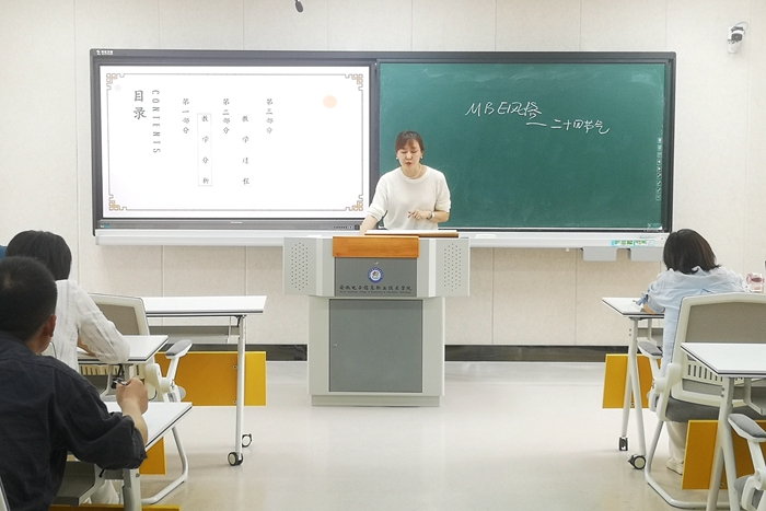 本网讯 为更好地促进教师间教学经验交流,提高教师课堂教学质量,提升教师教学业务能力水平,作为职业教育周系列活动之一,信息工程学院于5月17日在南203智慧教室开展教学公开示范课活动。本次公开课由计算机应用教研室张桂玲、蔡瑞瑞两位老师分别主讲“大学语文”和“平面设计AI”课程。全体教师和部分学生代表参加,活动由副院长胡北辰主持。